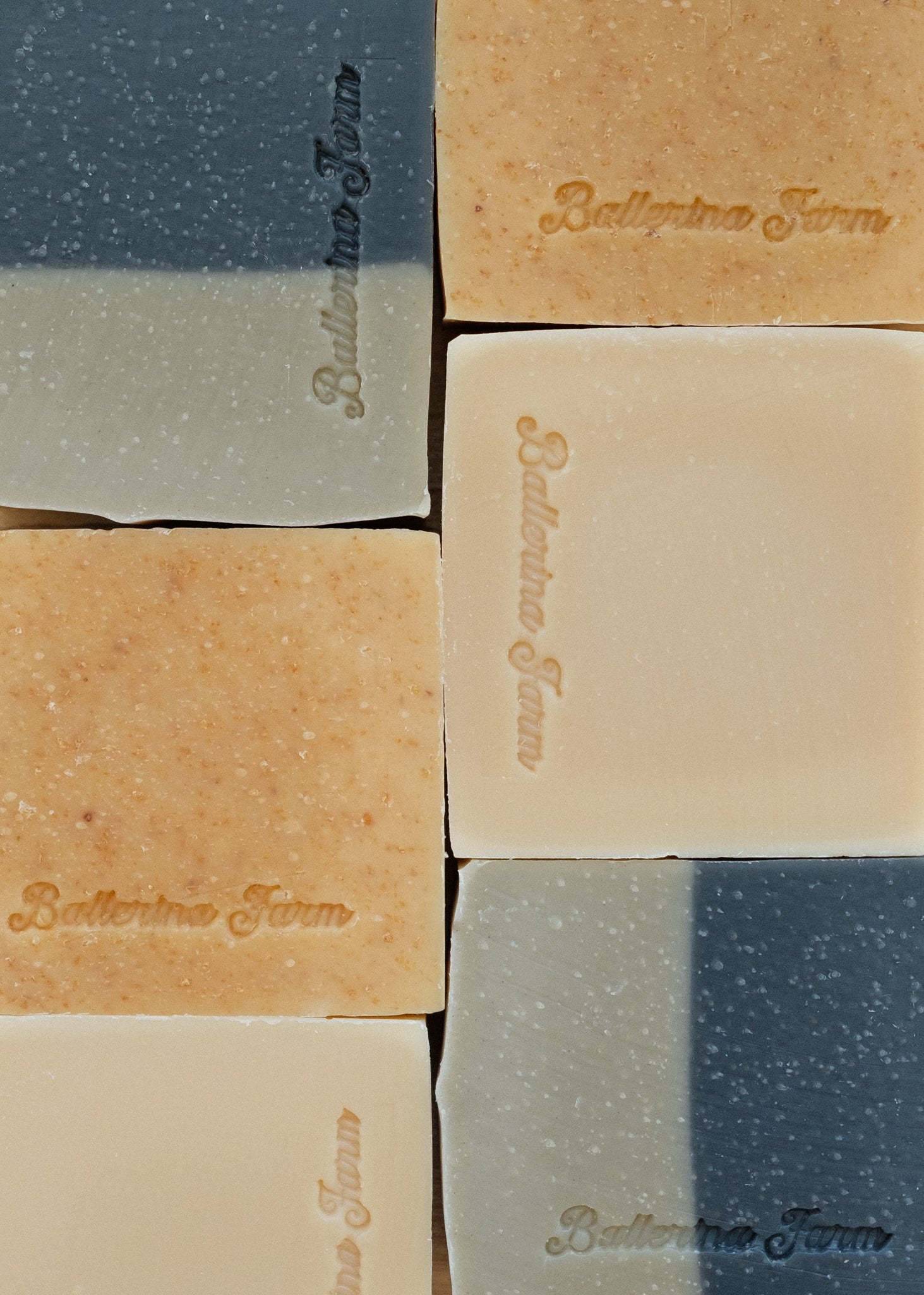 Our Clay & Charcoal Detoxifying Soap with charcoal and clay is another farm favorite and works to remove grime and excess oils. Naturally colored with two types of clay and charcoal to remove impurities from the skin. Scented with an invigorating blend of lavender, rosemary and peppermint essential oils, we love to use this soap first thing in the morning for a fresh start to the day.