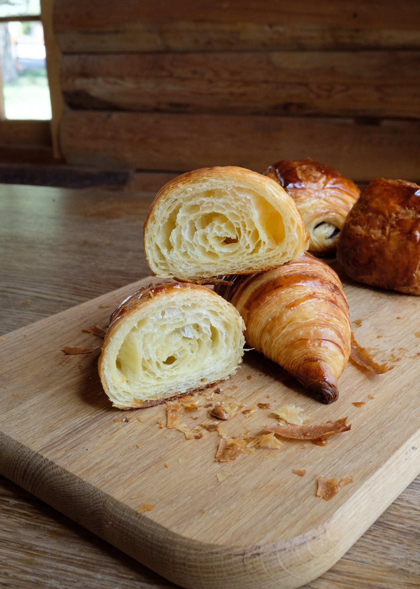 Croissant Ingredients: High Gluten Wheat Flour, Butter, Milk, Sugar, Salt, Yeast, Cocoa mass, Cocoa Butter, Soy Lecithin, and Natural Vanilla Flavoring